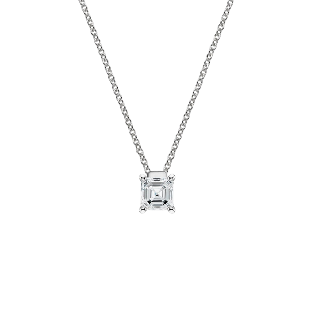 1 To 3 CT Floating Solitaire Asscher Cut Lab Grown Diamond Pendant in 10K/14K/18K Gold | Pooja Diamond | IGI Certified Lab Diamond