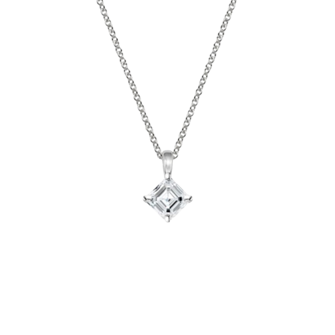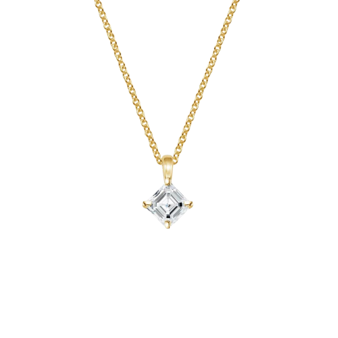 1 TO 3 CT Single Bail Four-Prong Asscher Cut Lab Grown Diamond Pendant in 10K/14K/18K Gold | Pooja Diamond | IGI Certified Lab Diamond