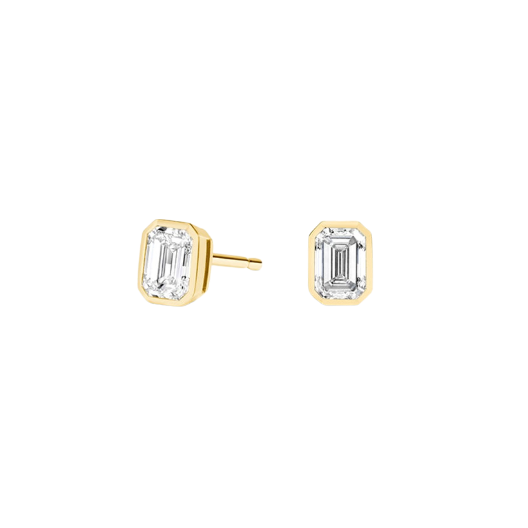 1 To 3 CT Classic Emerald Shape Lab Diamond Bezel Stud Earrings – 10K/14K/18K Gold | Pooja Diamond | IGI Certified Lab Diamond