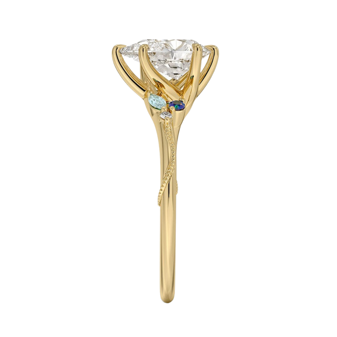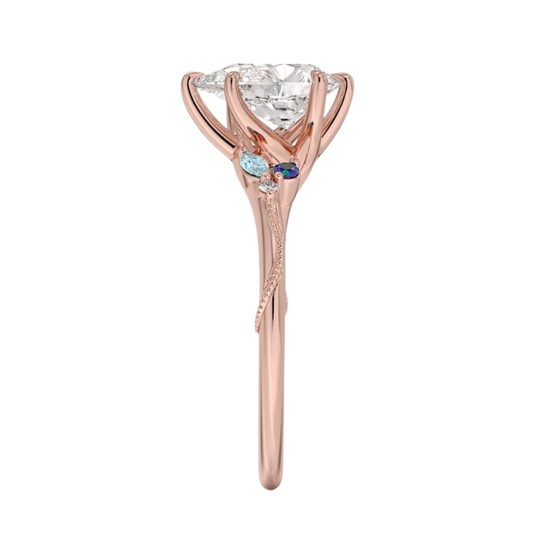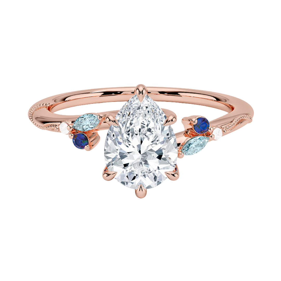 1 TO 5 CT Camellia Pear Cut Lab Grown Diamond Ring with Indigo Accents & Milgrain in Gold | Pooja Diamond | IGI Certified Lab Diamond