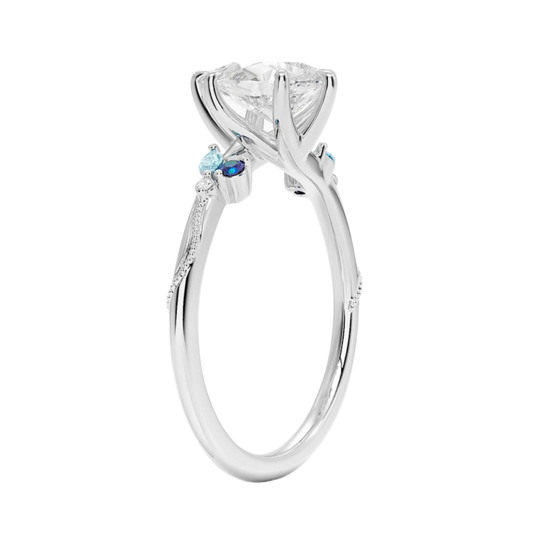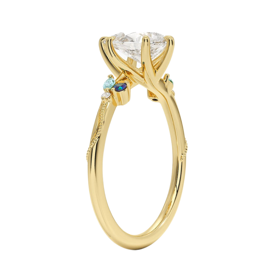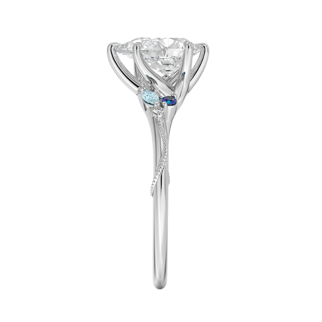 1 TO 5 CT Camellia Pear Cut Lab Grown Diamond Ring with Indigo Accents & Milgrain in Gold | Pooja Diamond | IGI Certified Lab Diamond
