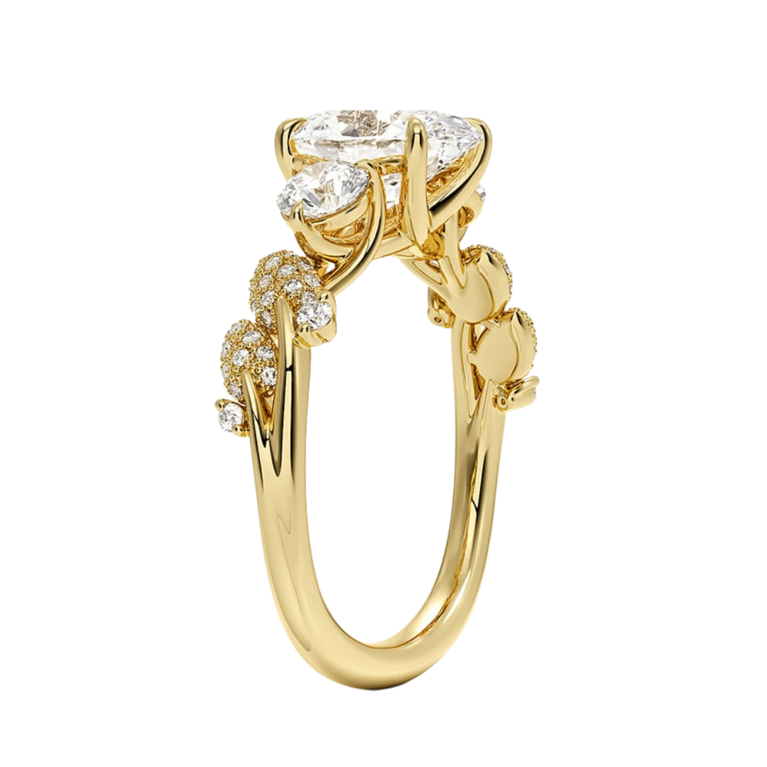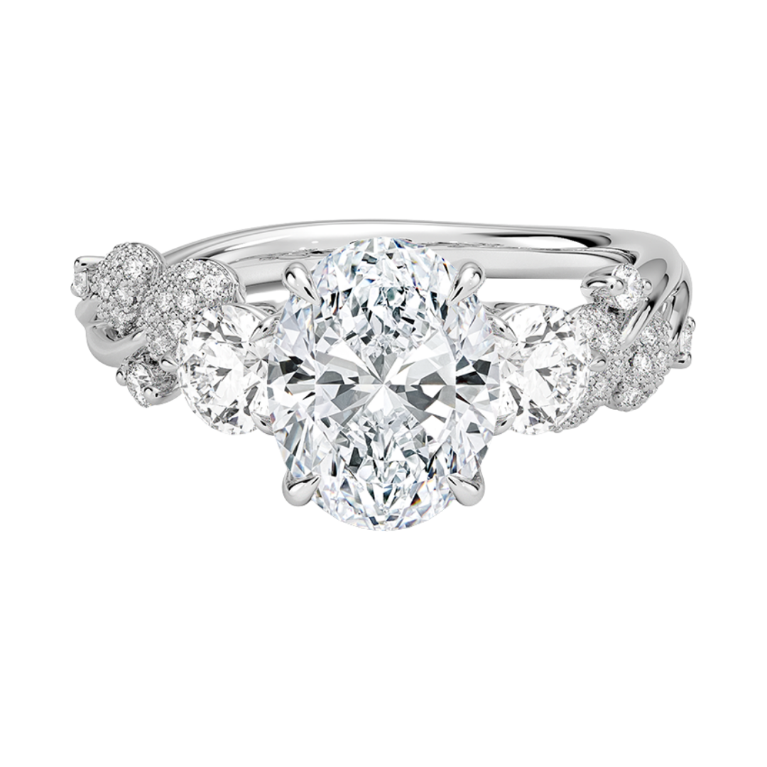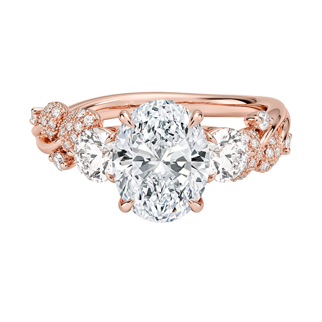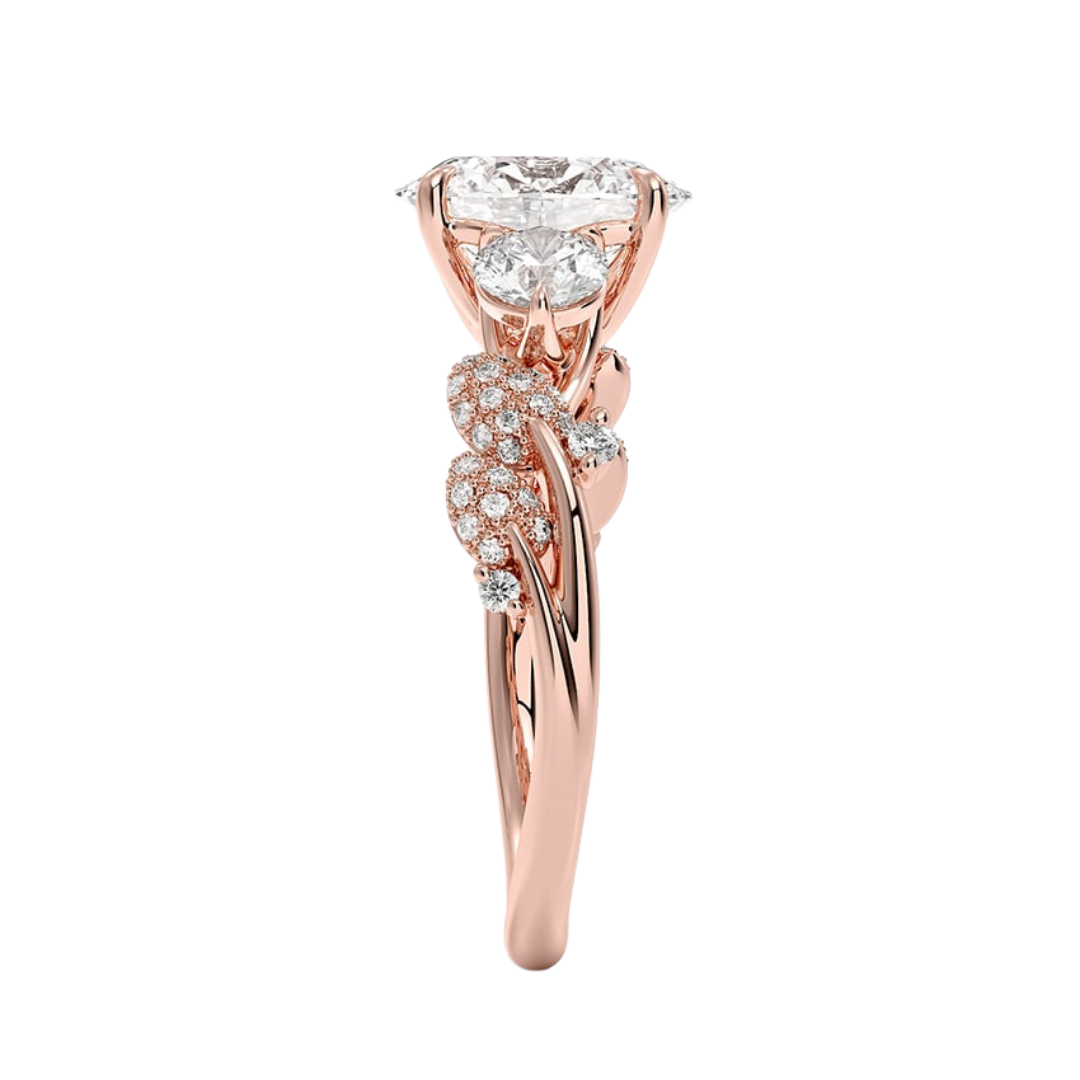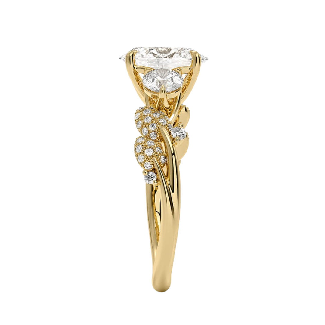1 To 5 CT Canopy Three Stone Lab-Grown Diamond Ring in 10K/14K/18K Gold – Oval Cut Center with Nature-Inspired Round Diamond Accents | Pooja Diamond | IGI Certified Lab Diamond