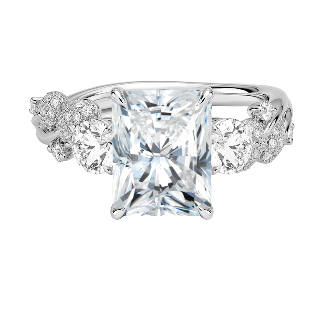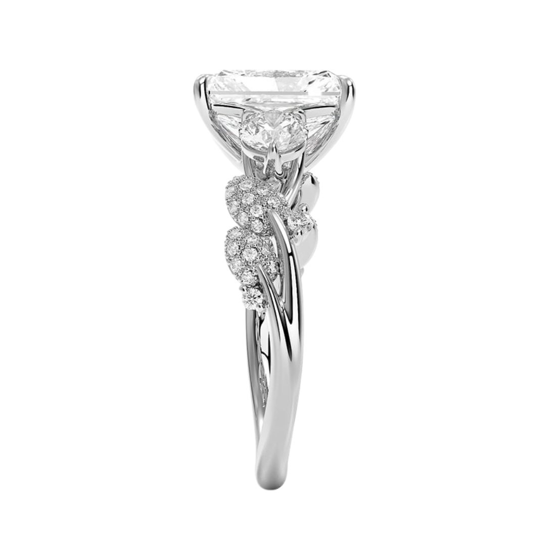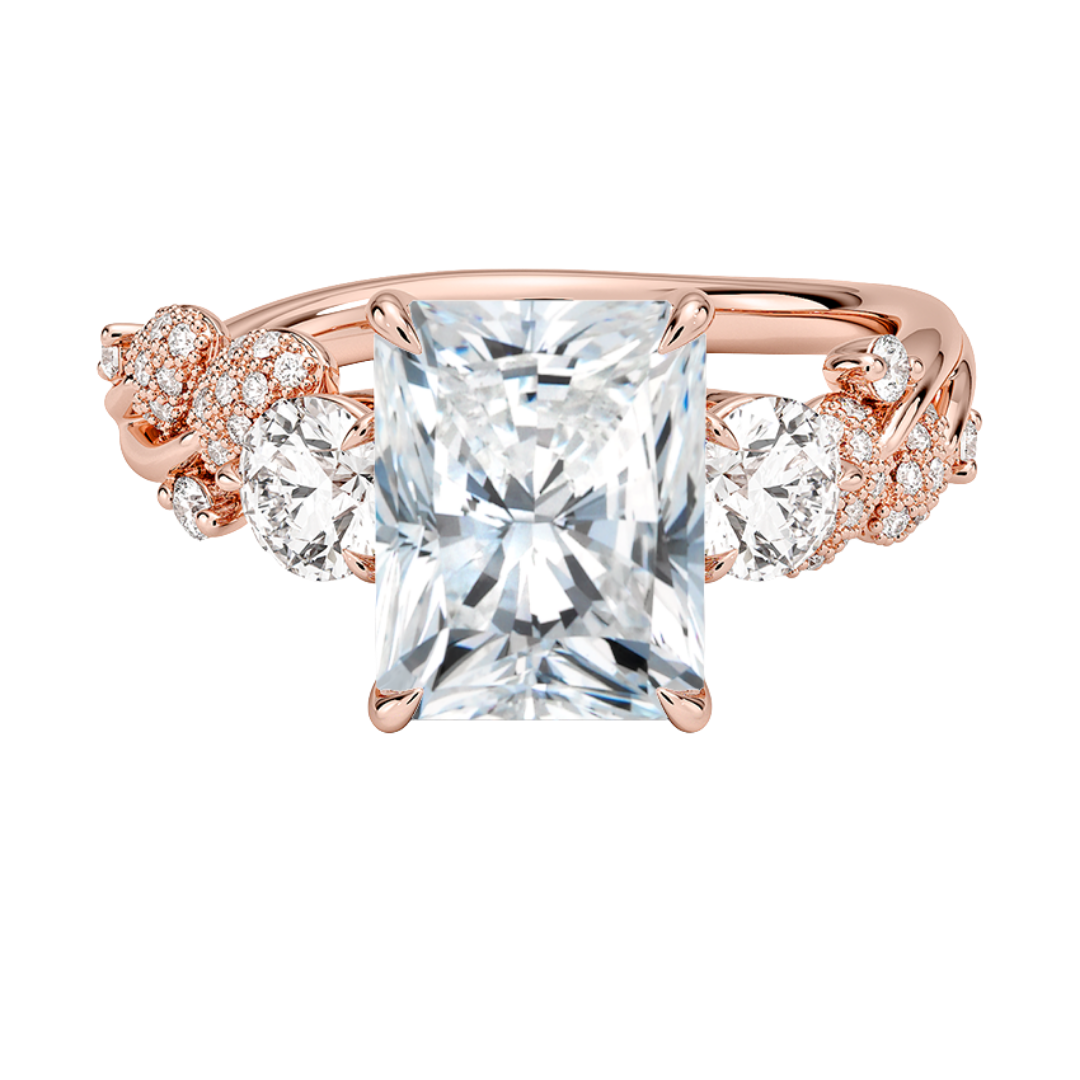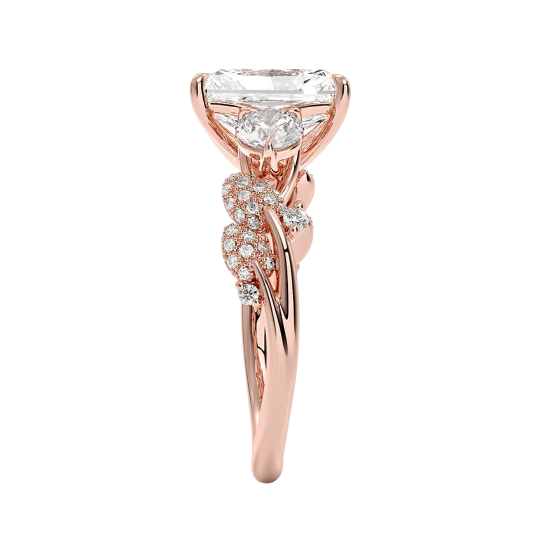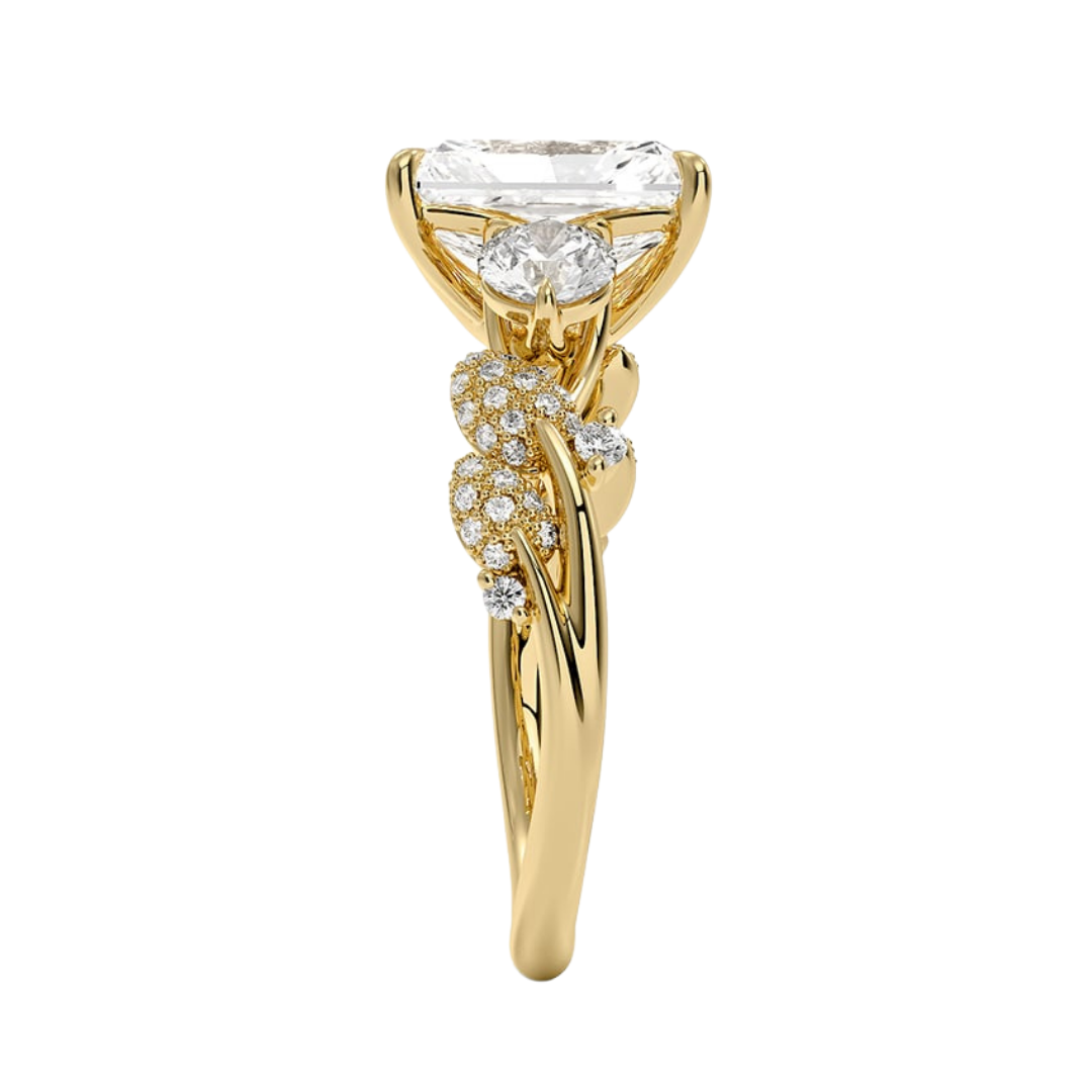 1 To 5 CT Canopy Three Stone Lab-Grown Diamond Ring in 10K/14K/18K Gold – Radiant Cut Center with Nature-Inspired Round Diamond Accents | Pooja Diamond | IGI Certified Lab Diamond