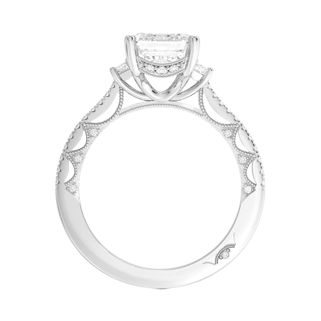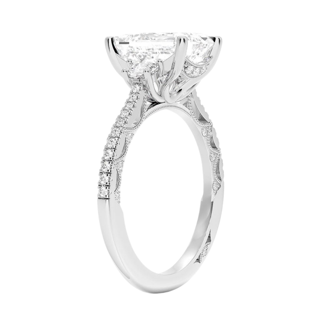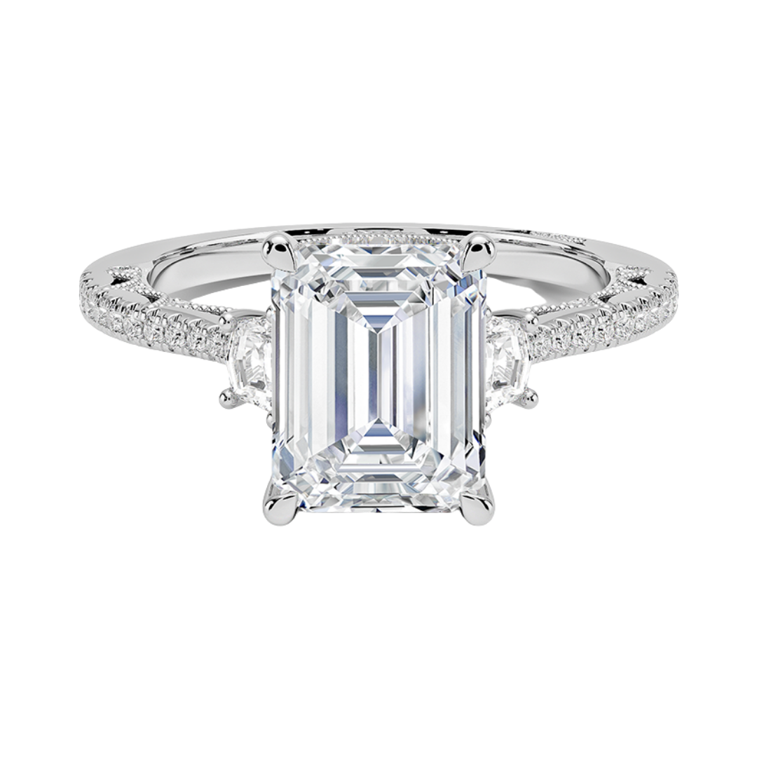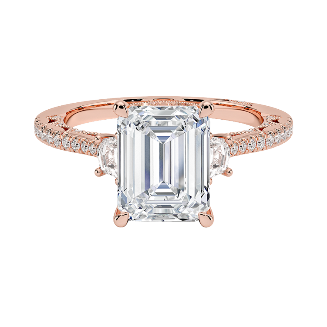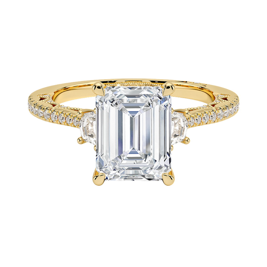 1 TO 5 Ct Lunetta Crescent Pavé Three Stone Emerald Cut Lab Grown Diamond Ring in 10K/14K/18K Gold | Pooja Diamond | IGI Certified Lab Diamond