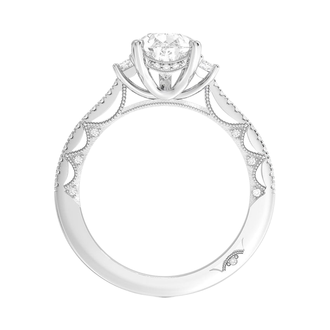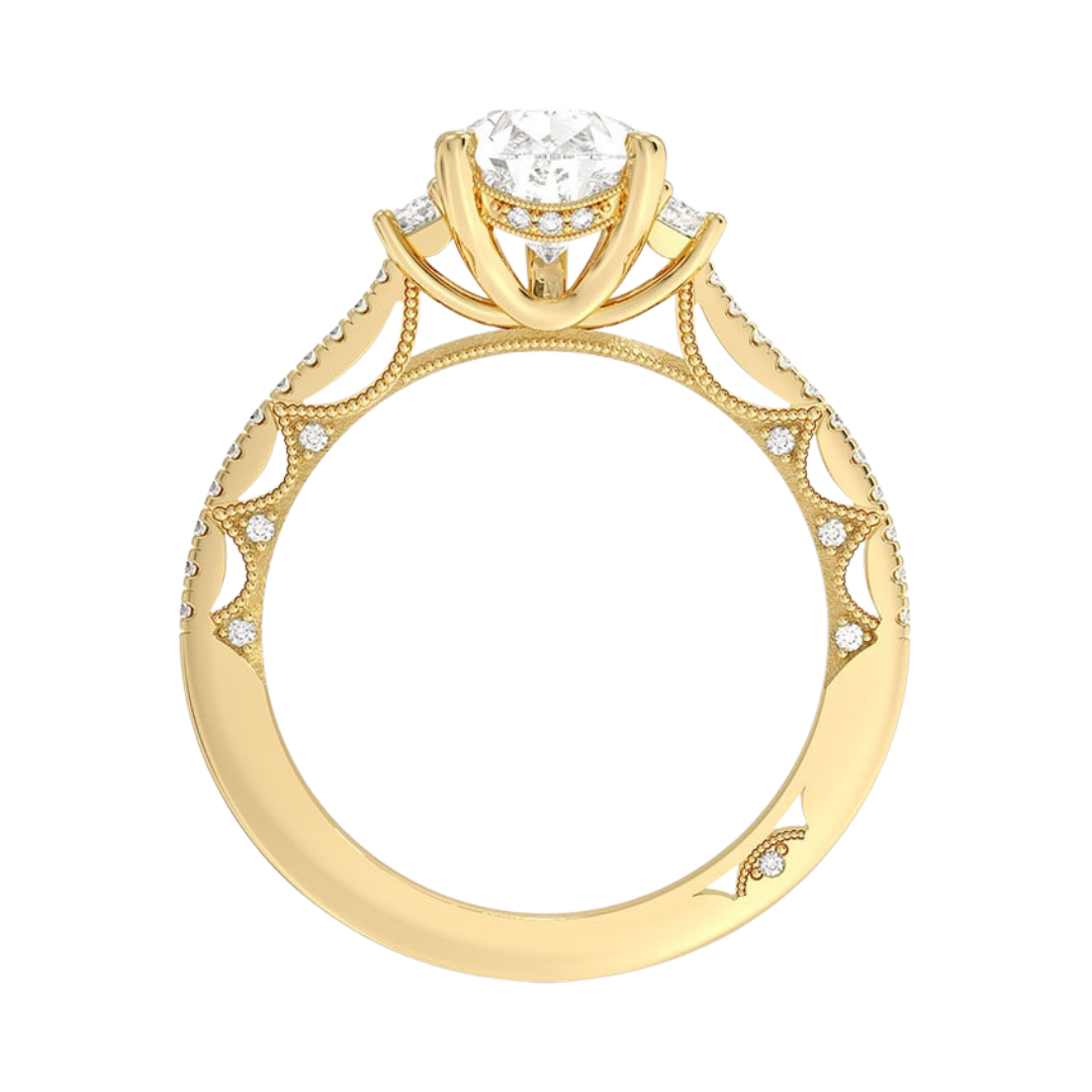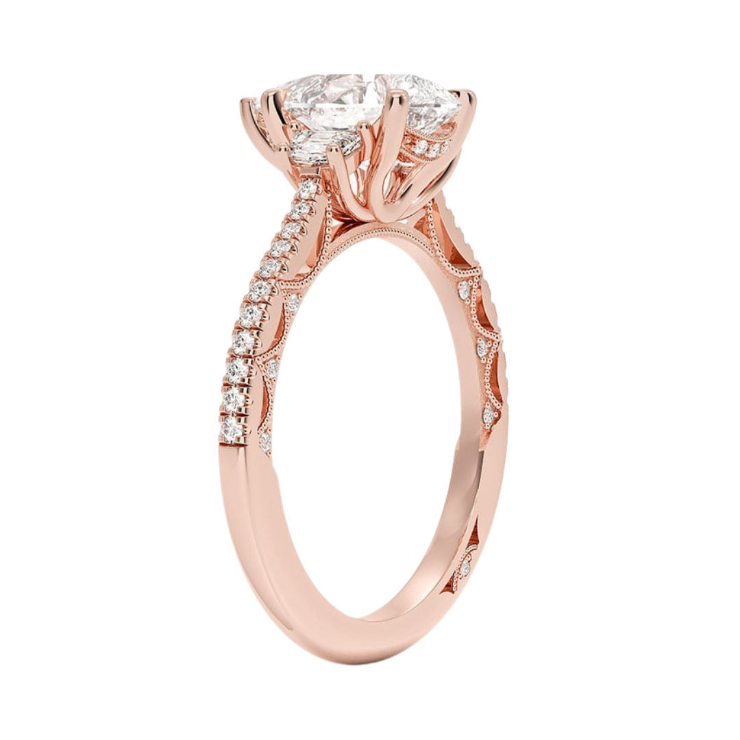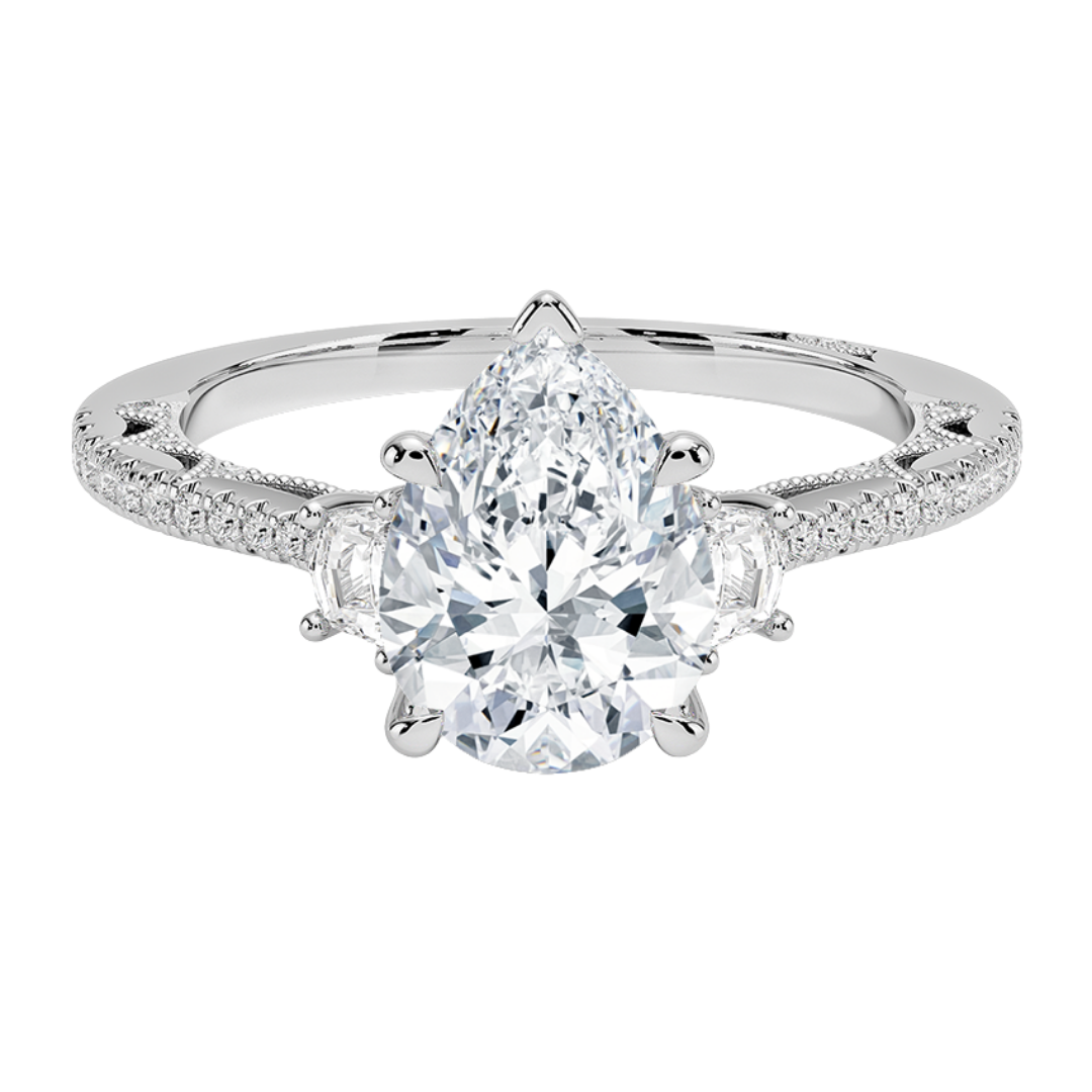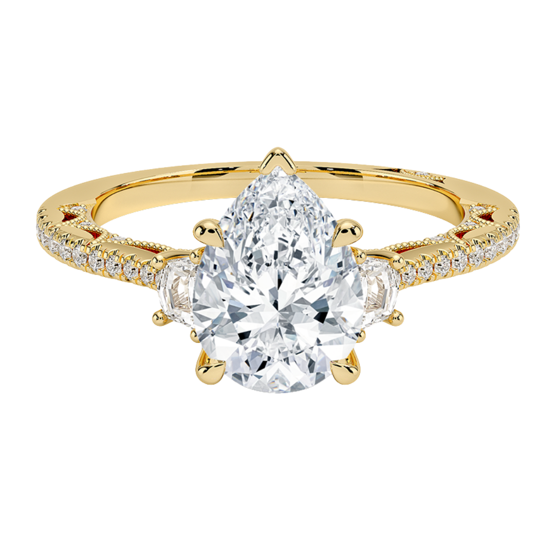 1 TO 5 Ct Lunetta Crescent Pavé Three Stone Pear Cut Lab Grown Diamond Ring in 10K/14K/18K Gold | Pooja Diamond | IGI Certified Lab Diamond