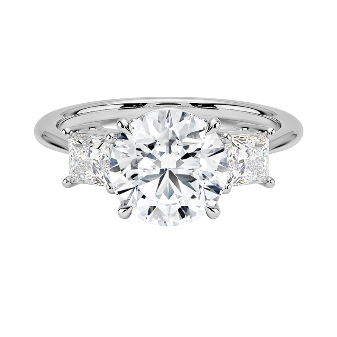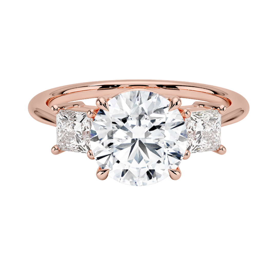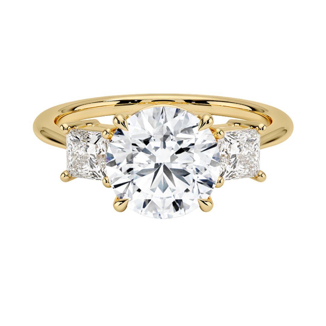 1 To 5 Ct Luxe Round & Princess Three Stone Lab-Grown Diamond Ring in 10K/14K/18K Gold | Pooja Diamond | IGI Certified Lab Diamond