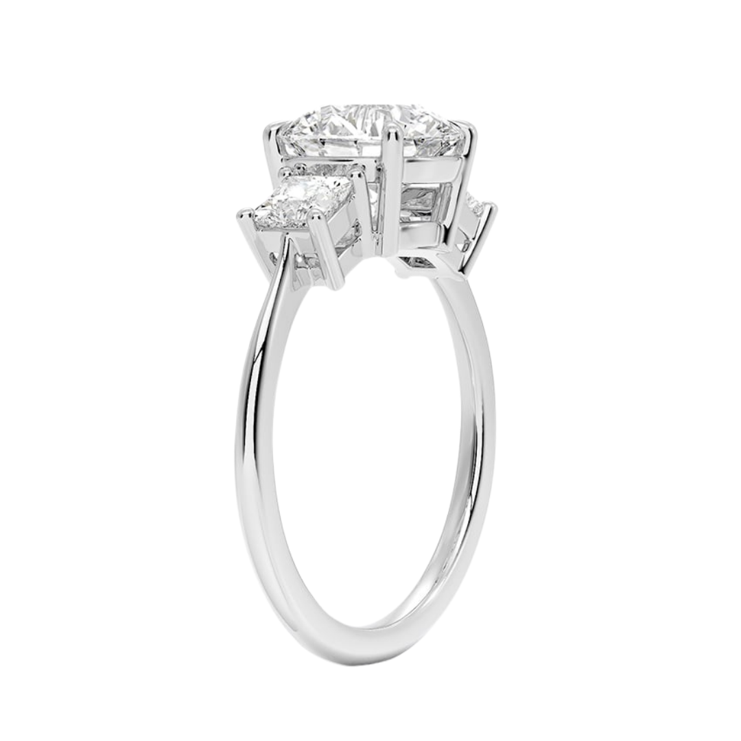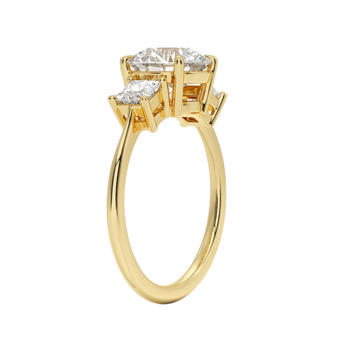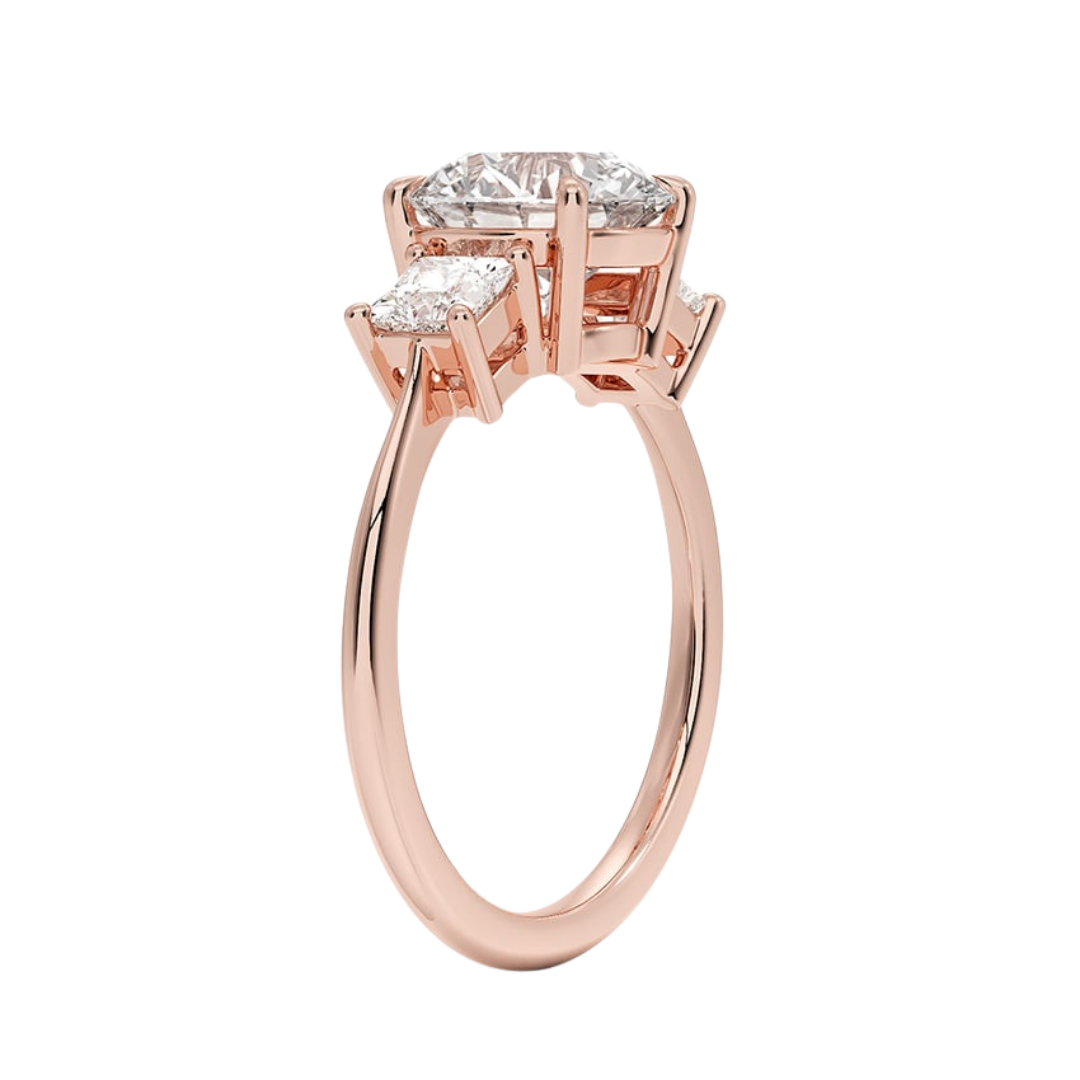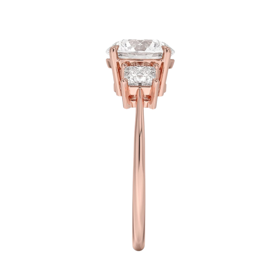 1 To 5 Ct Luxe Round & Princess Three Stone Lab-Grown Diamond Ring in 10K/14K/18K Gold | Pooja Diamond | IGI Certified Lab Diamond