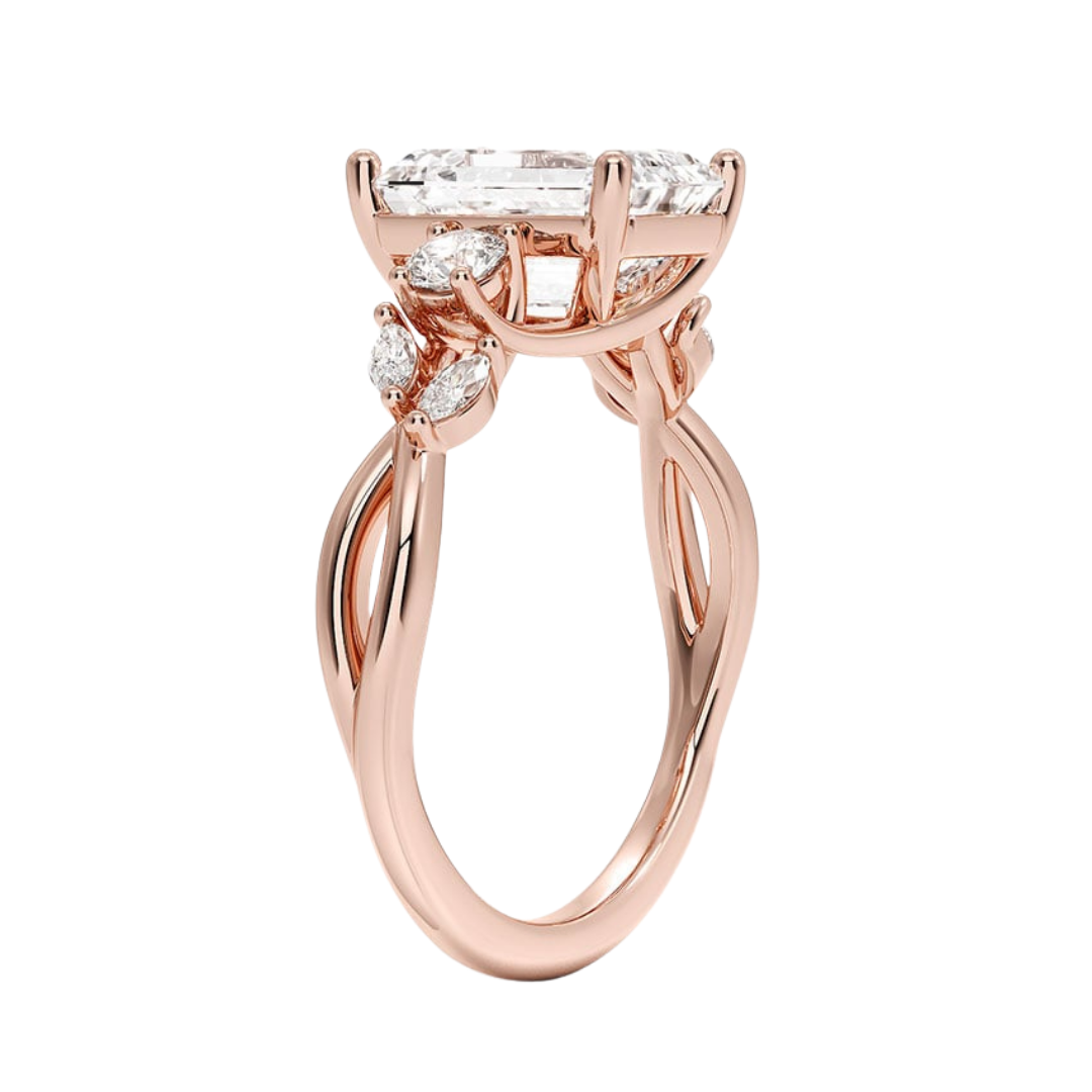 1 To 5 Ct Nature-Inspired Willow Emerald Cut Lab Diamond Three Stone Engagement Ring in 10K/14K/18K Gold| Pooja Diamond | IGI Certified Lab Diamond
