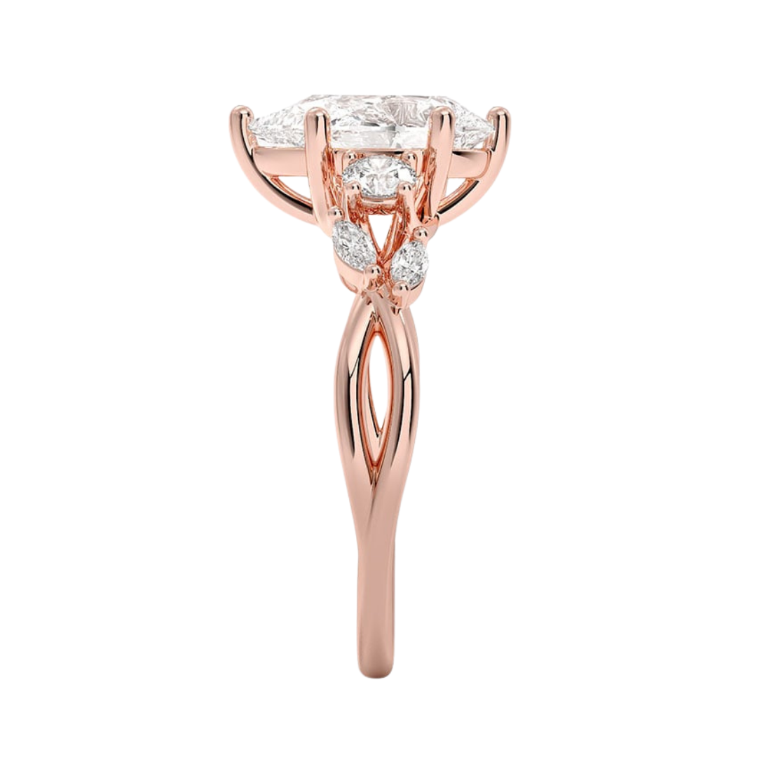 1 To 5 Ct Nature-Inspired Willow Pear Cut Lab Diamond Three Stone Engagement Ring in 10K/14K/18K Gold| Pooja Diamond | IGI Certified Lab Diamond