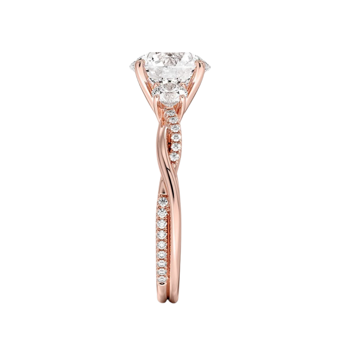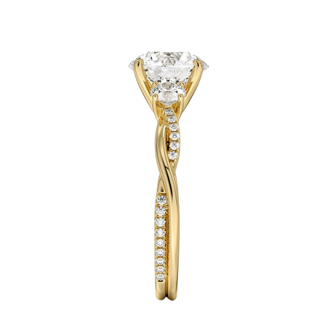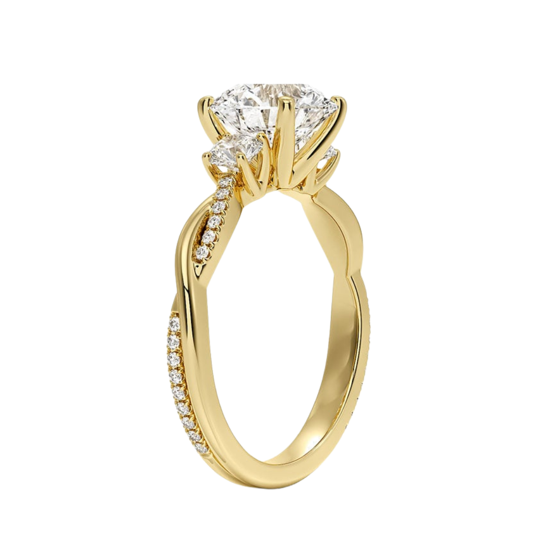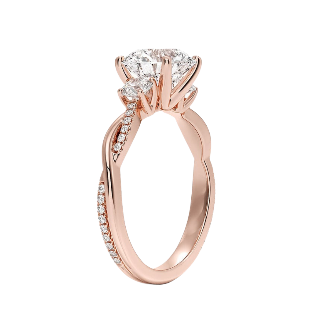 1 To 5 Ct Petite Twisted Vine Three Stone Round Cut Lab Grown Diamond Ring in 10K/14K/18K Gold | Pooja Diamond | IGI Certified Lab Diamond