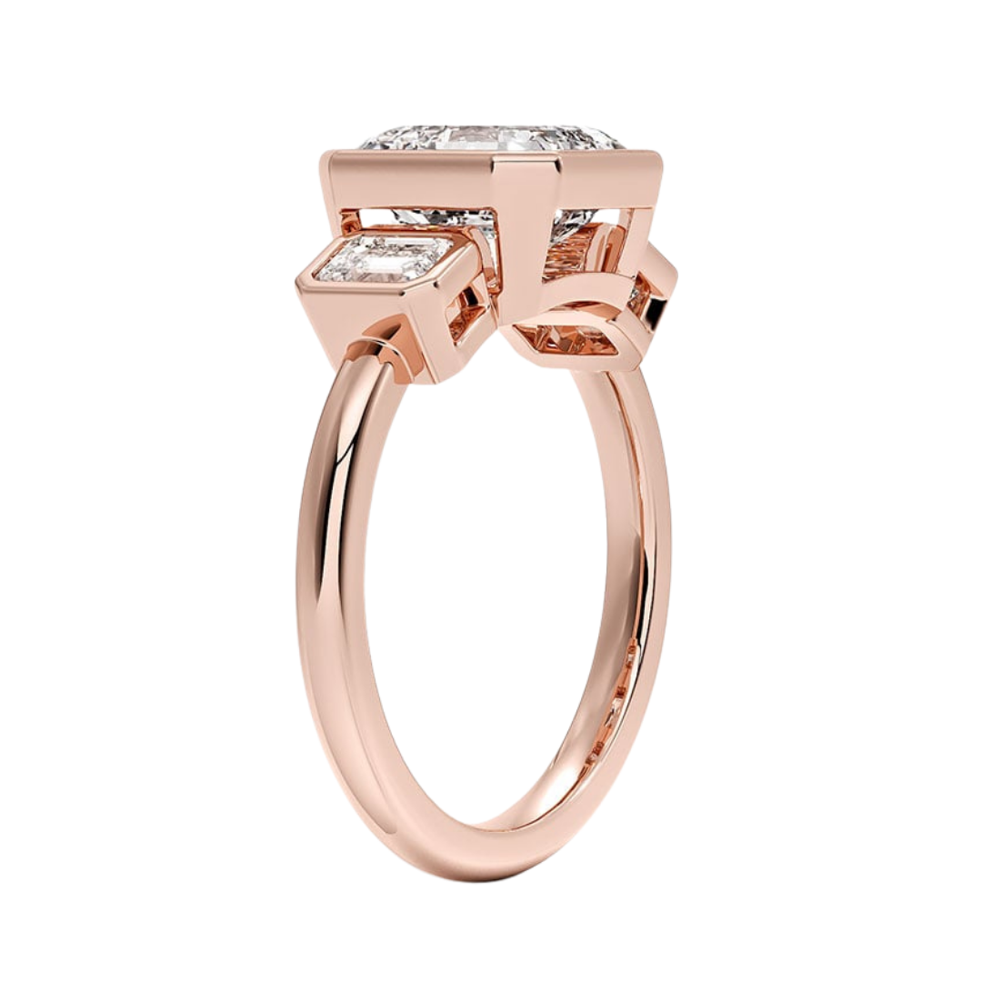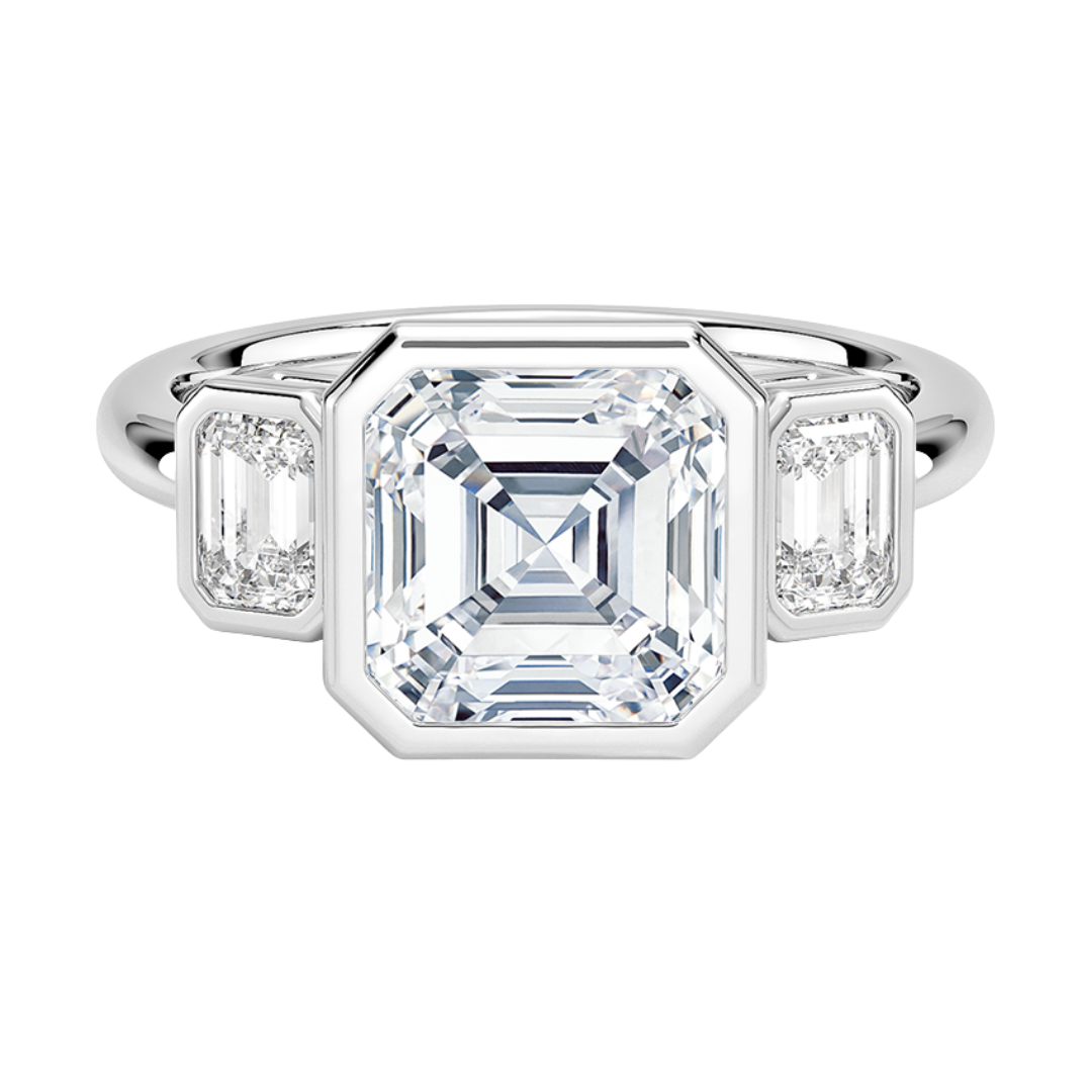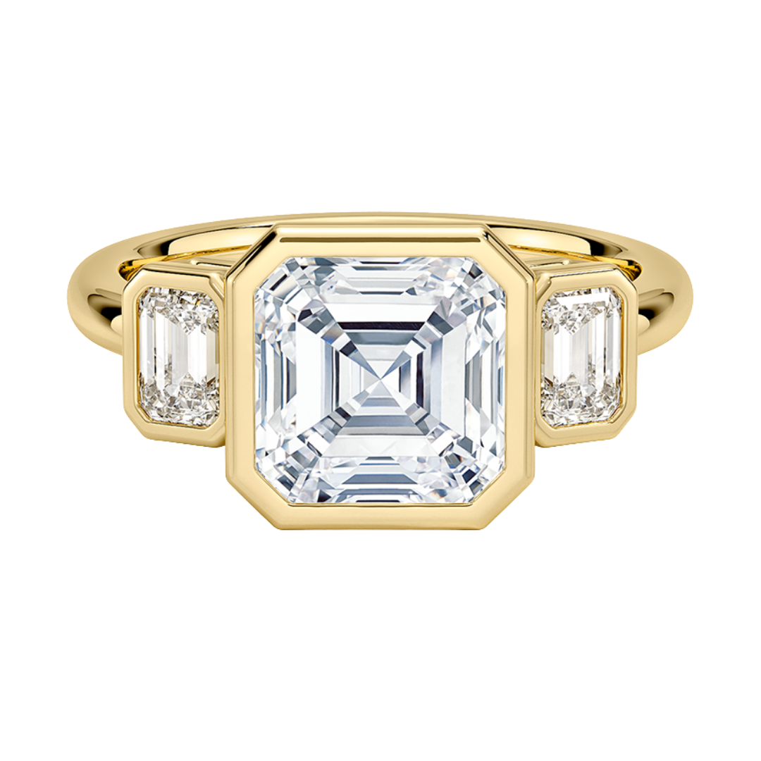 1 To 5 Ct Rhiannon Asscher Bezel Three Stone Lab-Grown Diamond Ring in 10K/14K/18K Gold | Pooja Diamond | IGI Certified Lab Diamond