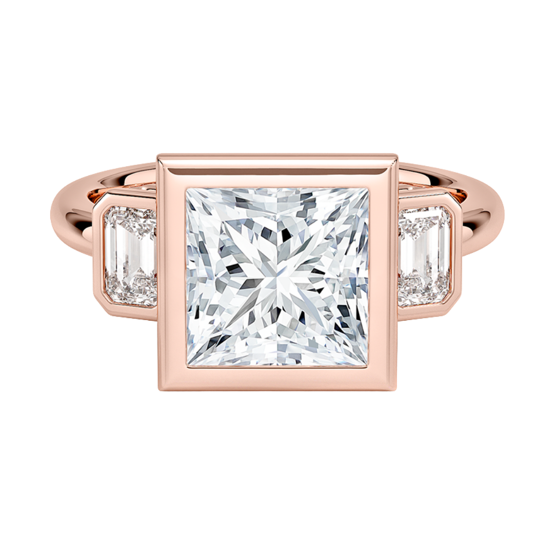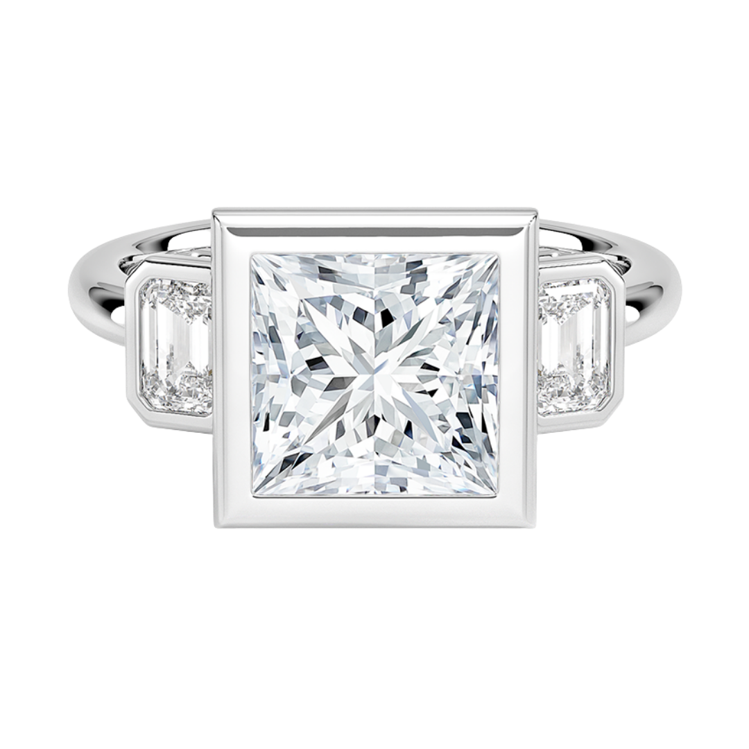 1 To 5 Ct Rhiannon Princess Bezel Three Stone Lab-Grown Diamond Ring in 10K/14K/18K Gold | Pooja Diamond | IGI Certified Lab Diamond
