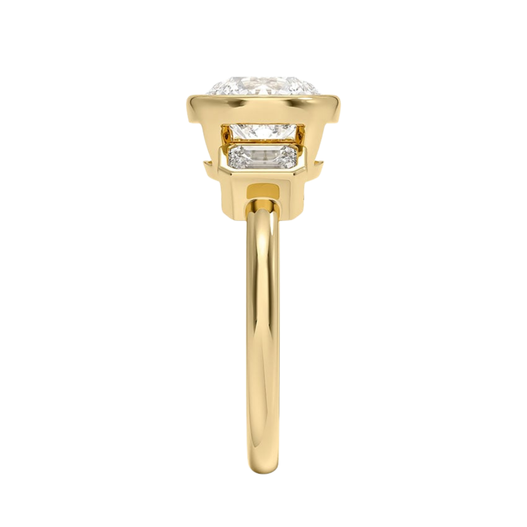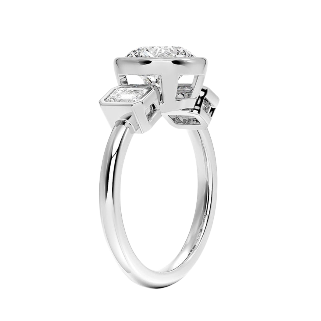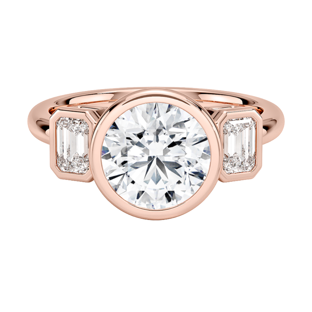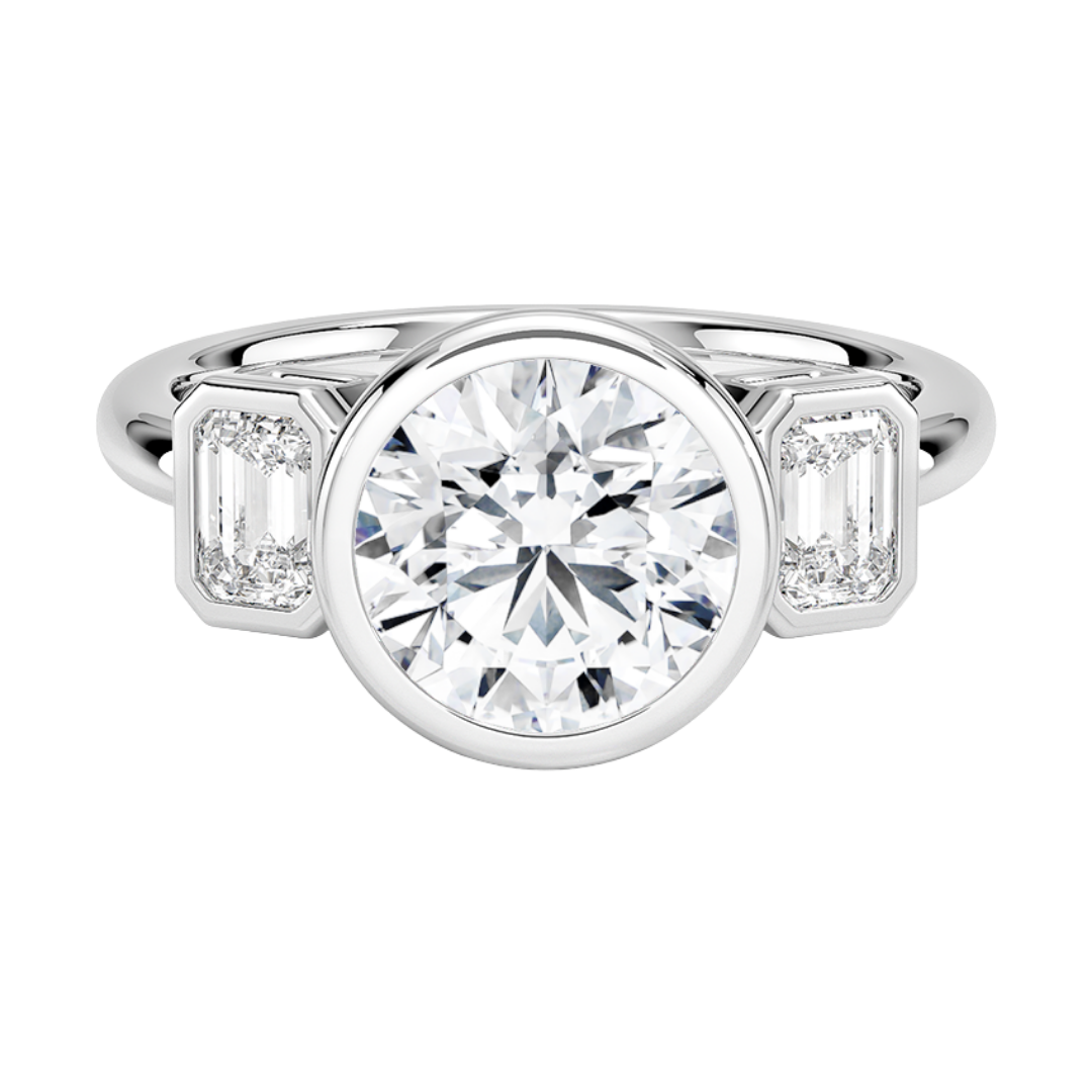 1 To 5 Ct Rhiannon Round Bezel Three Stone Lab-Grown Diamond Ring in 10K/14K/18K Gold | Pooja Diamond | IGI Certified Lab Diamond