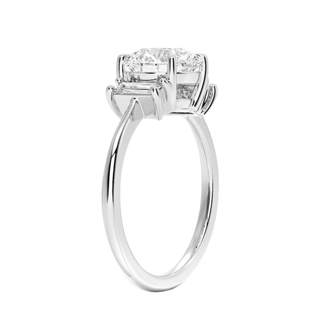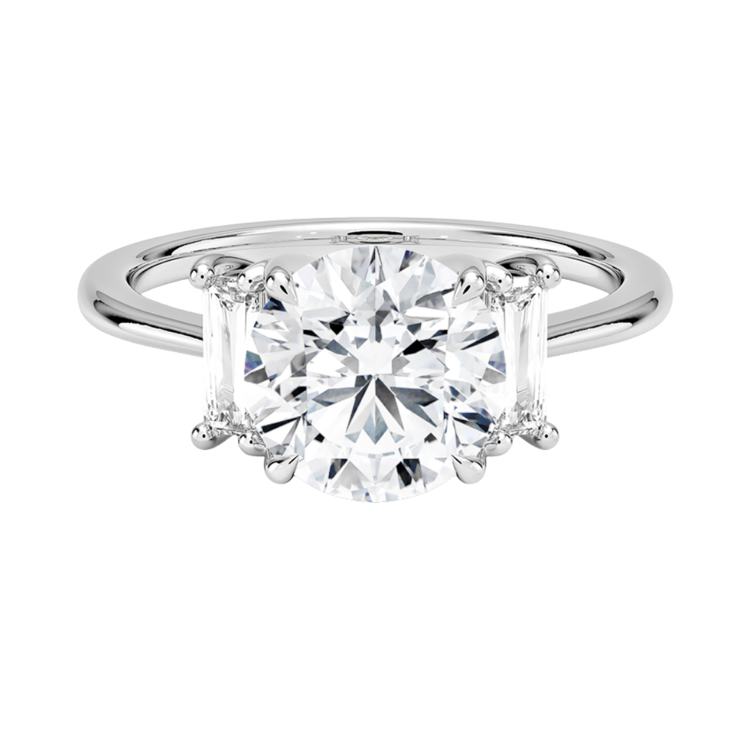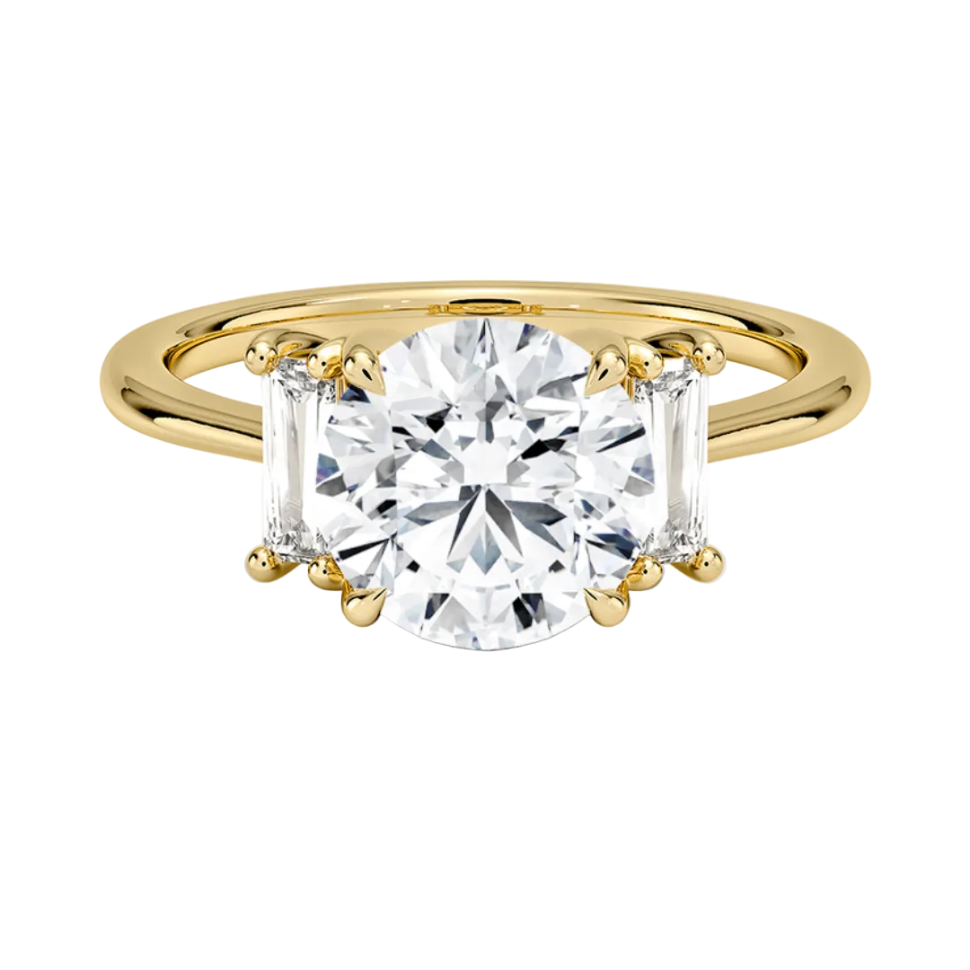 1 TO 5 Ct Vertical Baguette Three Stone Round Cut Lab-Grown Diamond Ring in 10K/14K/18K Gold | Pooja Diamond | IGI Certified Lab Diamond