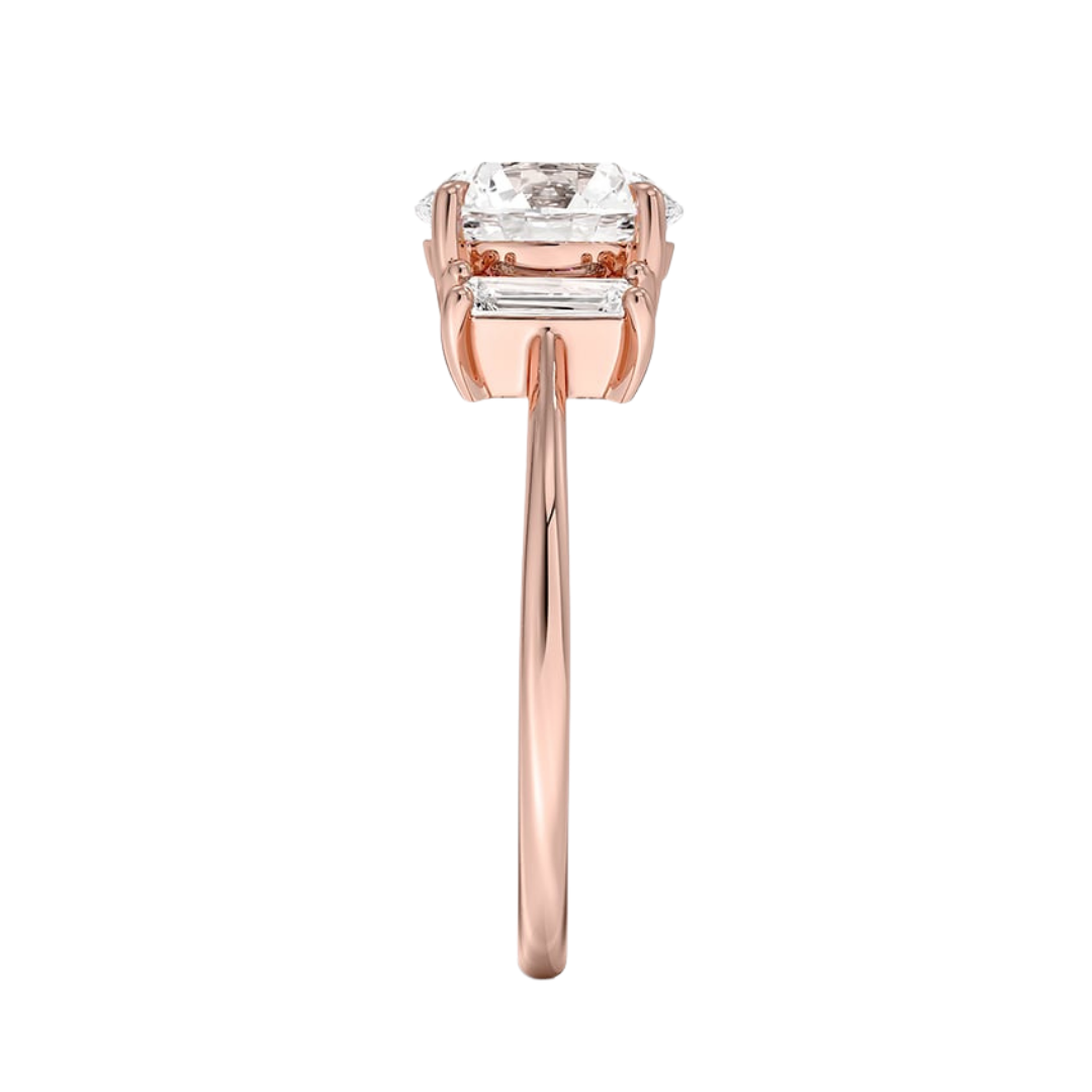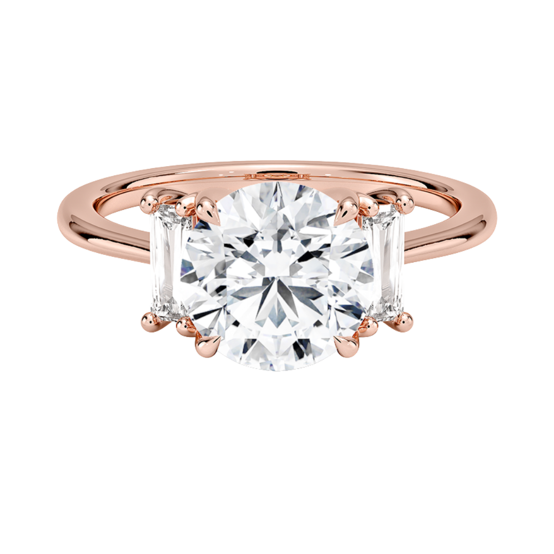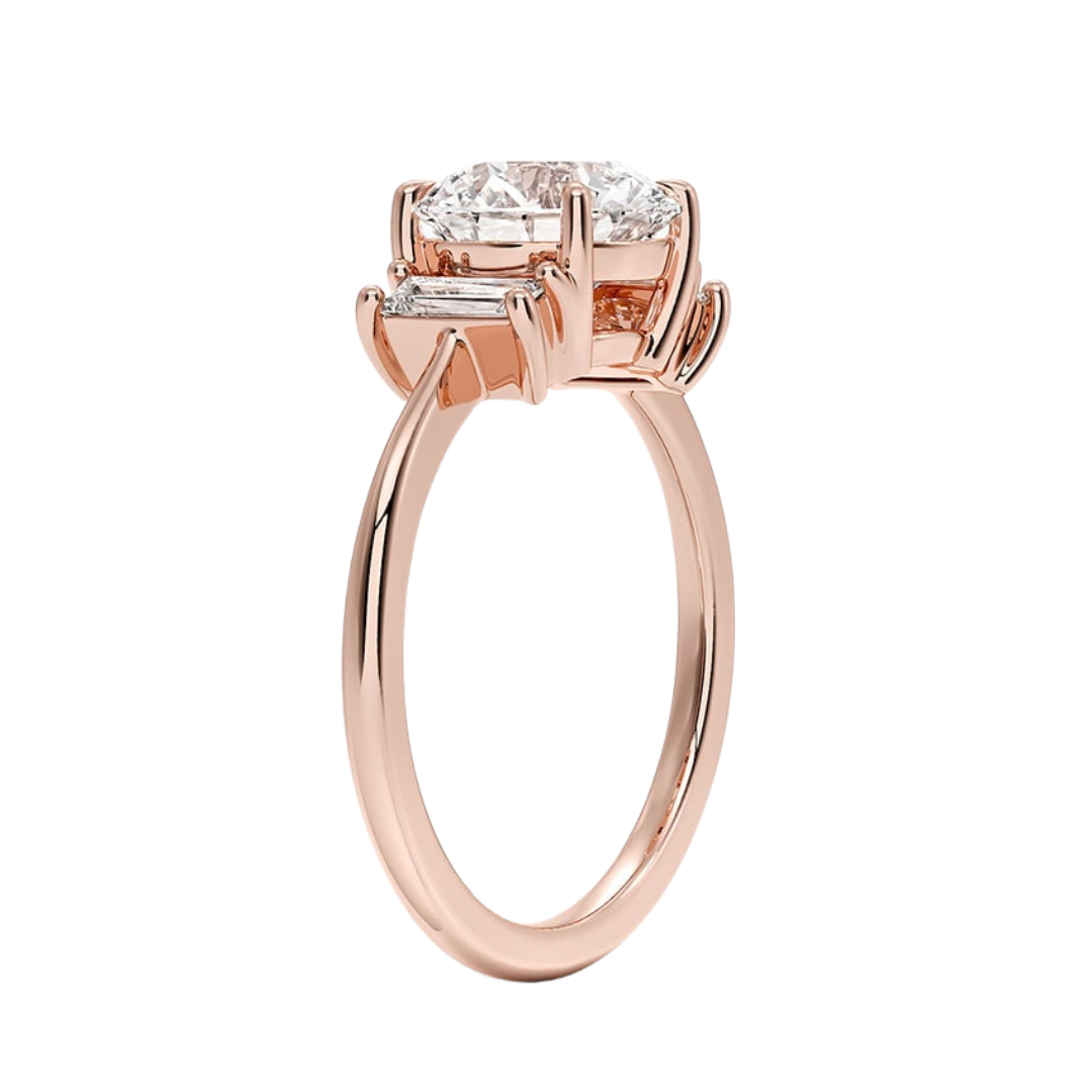 1 TO 5 Ct Vertical Baguette Three Stone Round Cut Lab-Grown Diamond Ring in 10K/14K/18K Gold | Pooja Diamond | IGI Certified Lab Diamond