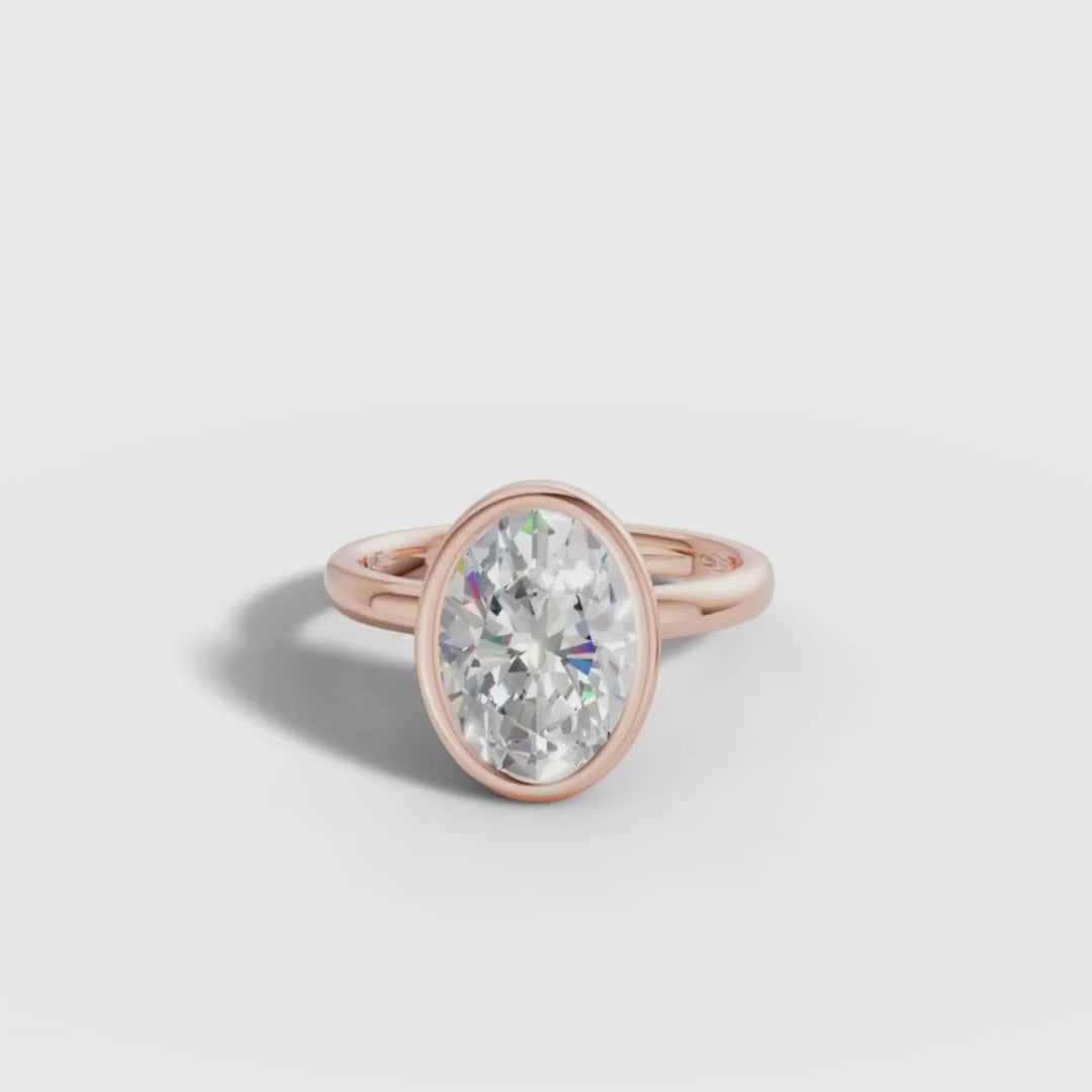 1 To 5 CT Oval Lab Grown Diamond Bezel Set Solitaire Ring | Two-Tone Gold Engagement Ring | IGI Certified Lab Diamond