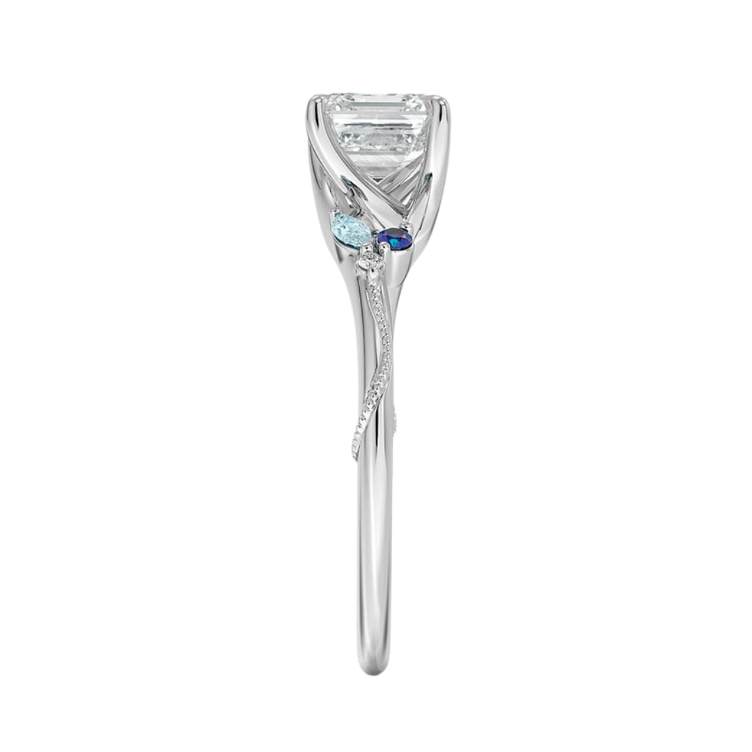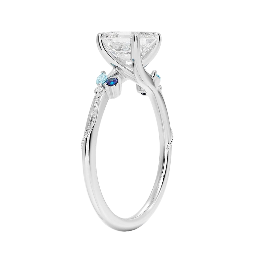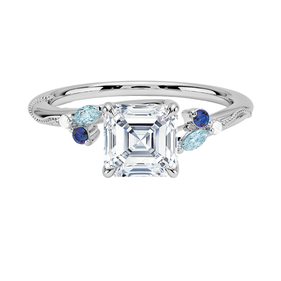 1 TO 5 CT Camellia Asscher Cut Lab Grown Diamond Ring with Indigo Accents & Milgrain in Gold | Pooja Diamond | IGI Certified Lab Diamond