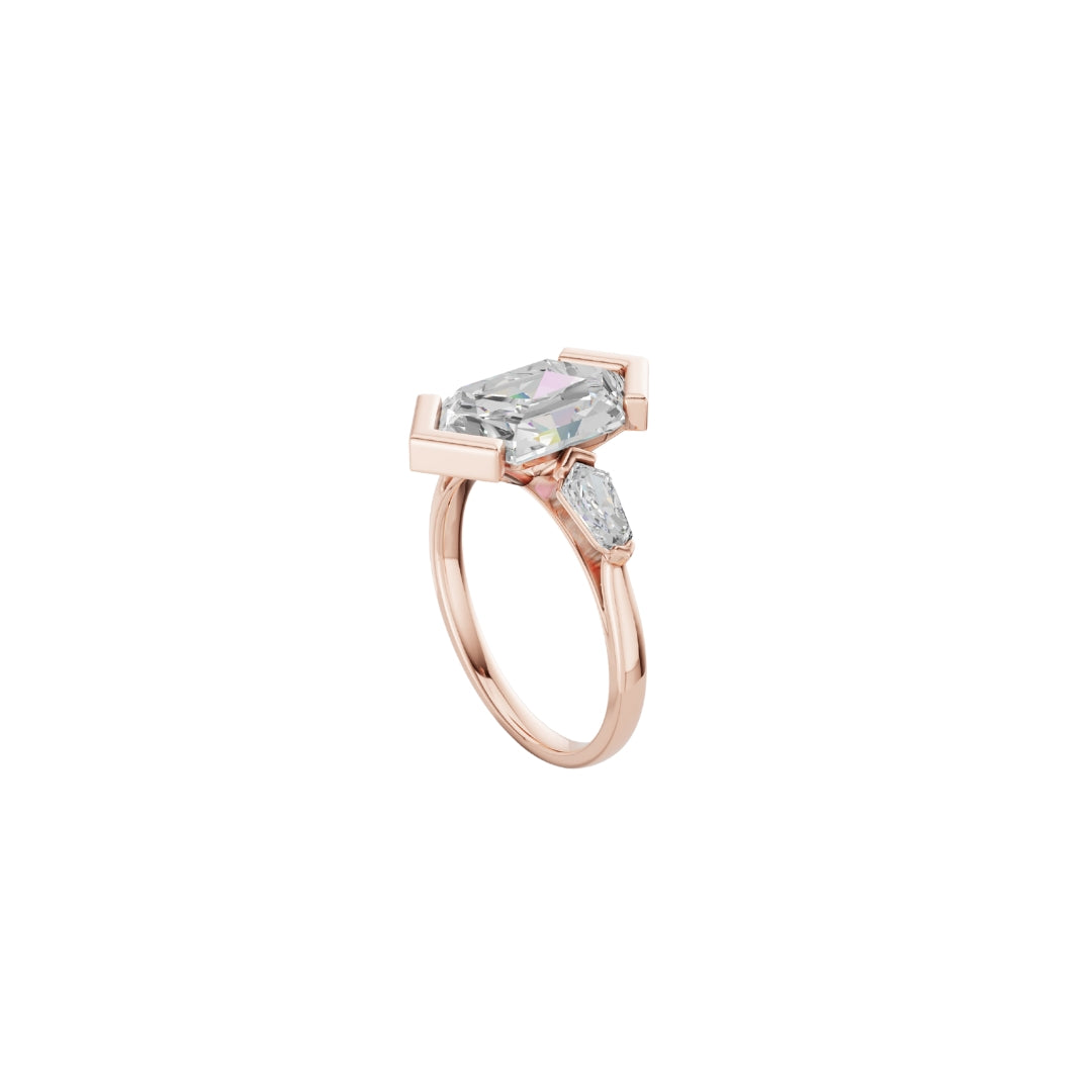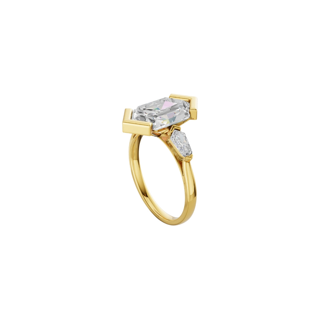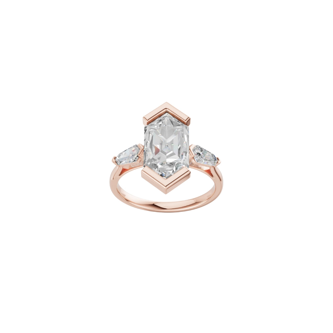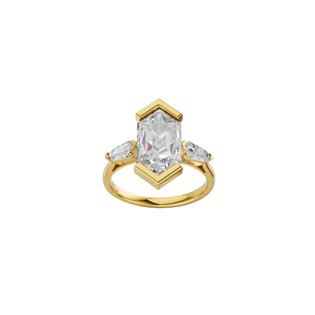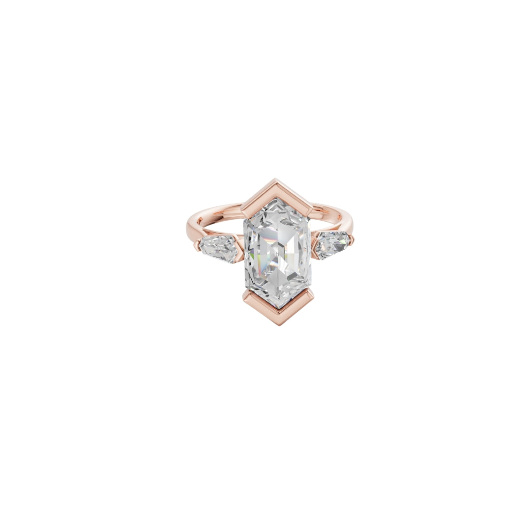 Hexagonal Cut Lab Grown Diamond Bezel Set Three Stone Ring