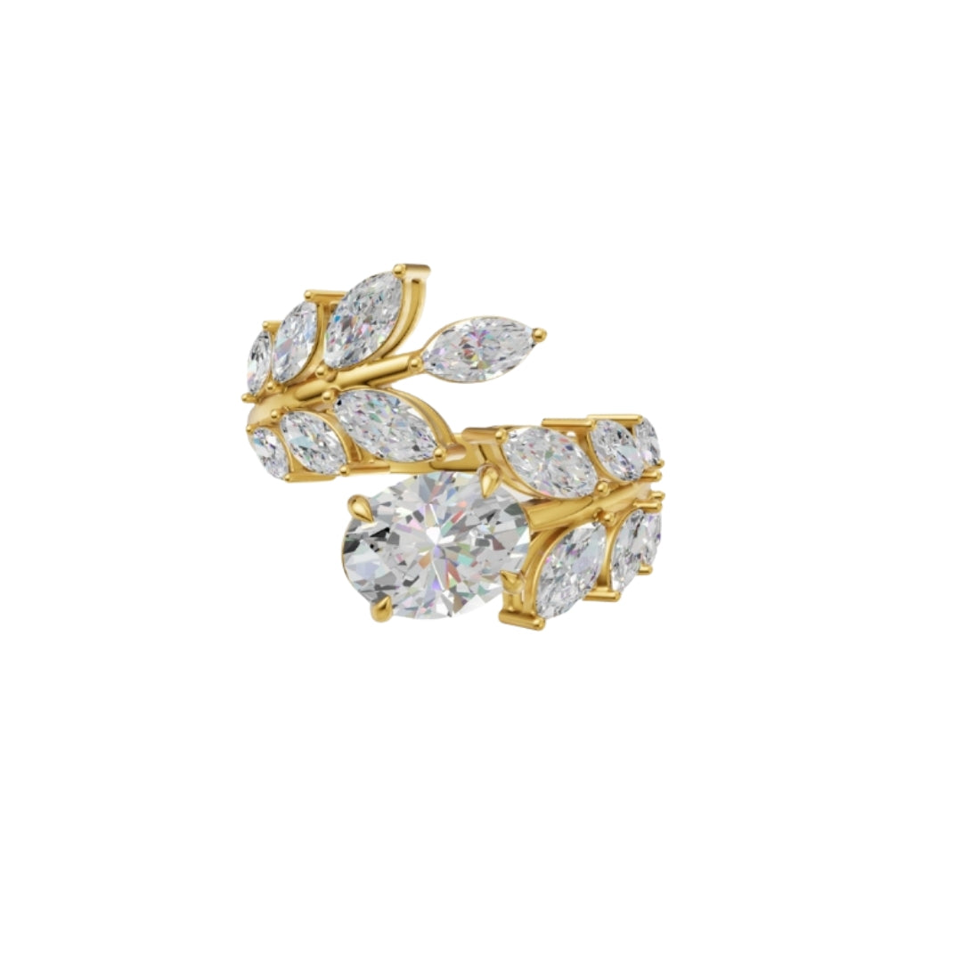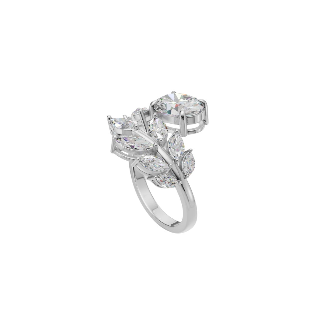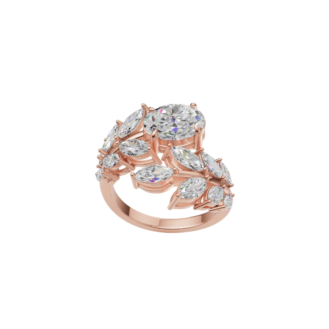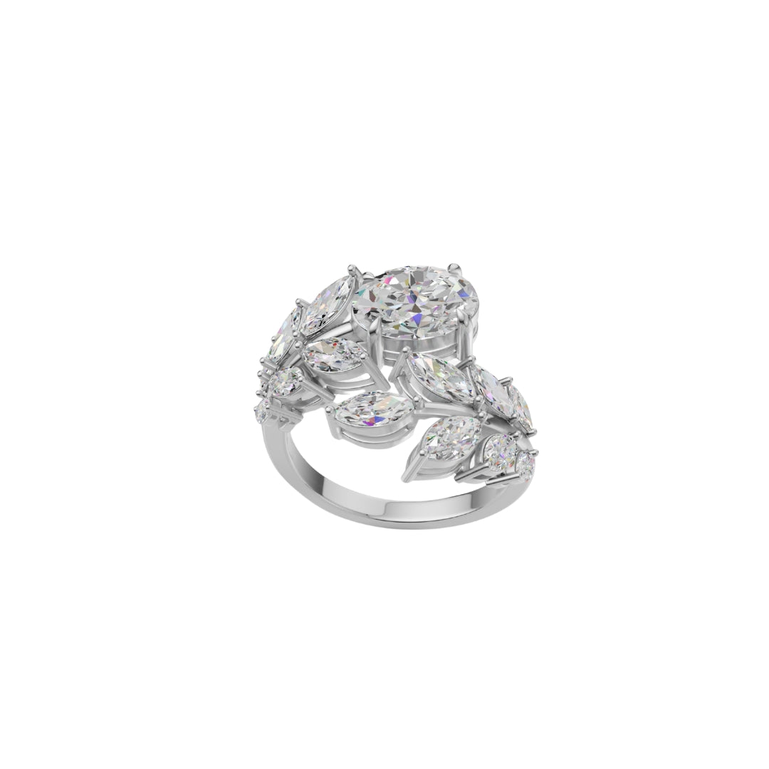 Nature Inspired Lab Grown Oval Diamond Ring with Marquise Stones
