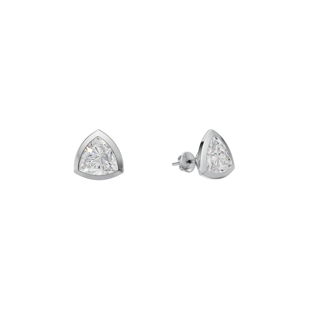 Trilliant Cut Lab Grown Diamond Stud Earrings in Gold
